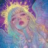 Tags: blonde hair, blue, digital art, dynamic, ethereal, face, fragmented, Gildan, glass shards, jacket, light, neon, portrait, purple, shadow, woman