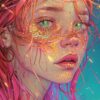 A close-cropped portrait of a young womanβs face, awash in a cascade of luminous particles and flowing, electric-blue hair. Her skin glows with a warm, peach undertone, punctuated by scattered pink freckles and glistening teardrops that refract light. The composition is tightly focused on her eyes and lips, creating an intimate, almost vulnerable feeling. A delicate gold chain is visible at her throat. The overall effect is a dreamlike fusion of organic form and digital shimmer, evoking a sense of fleeting beauty and emotional intensity.