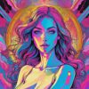 A portrait of a woman with striking teal hair and intense gaze dominates the frame, her skin rendered in shifting gradients of fuchsia, cyan, and gold. Behind her, an explosion of swirling, organic forms resembling both brain coral and psychedelic blooms radiates outwards, lit from behind with a warm, diffused glow. The composition is symmetrical, emphasizing the face as a focal point, while the backgroundβs textured lines create a sense of dynamic energy. The overall palette is intensely saturated and cool-toned, punctuated by flashes of warm orange and yellow. Fine linework defines the facial features and the swirling patterns, evoking a sense of interconnectedness.