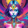 A close-cropped portrait of a young woman is enveloped by concentric, undulating waves of color. The face, rendered in a crisp, illustrative style, features sharp angles and a cool palette of Lavender, Teal, and Rose. Strong directional light sculpts her cheekbones and jawline, creating dramatic shadows. The background’s swirling forms evoke a psychedelic energy, contrasting with the woman’s relatively static pose. Fine linework defines the hair and facial features, while a subtle gradient in the skin tones suggests a metallic sheen. Wisps of smoke curl around the periphery.