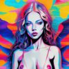 A symmetrical portrait of a womanβs face and upper torso, bisected to reveal a glowing, anatomical structure beneath the skin. The face is rendered with cool Turquoise and Lavender tones, while the ribcage and internal forms pulse with hot Pink and Magenta. Concentric, rainbow-hued arcs radiate outward from behind the head, creating a halo effect. The texture is fluid and marbled, suggesting a merging of organic and digital forms. A central light source illuminates the face, casting soft shadows and emphasizing the contrast between the smooth skin and the intricate skeletal details.